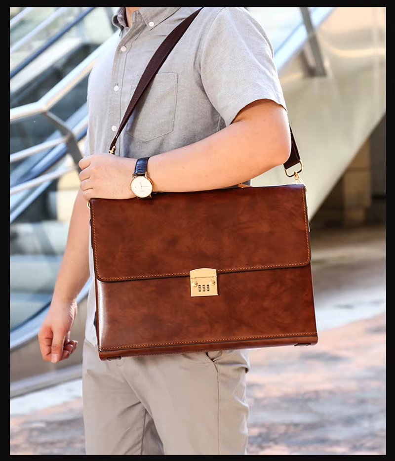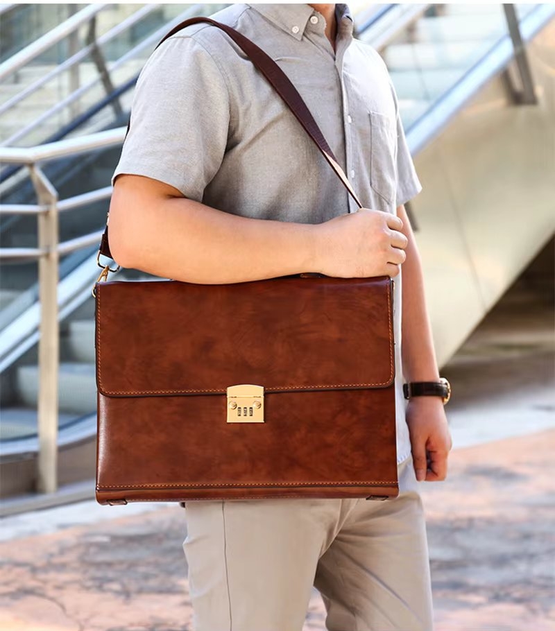 Geanta de umar pentru barbati Adrian GT1820, piele naturala, maro inchis